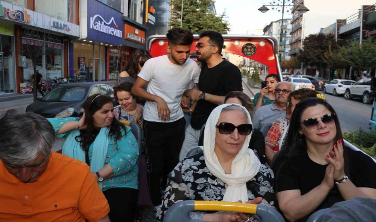 Van’da Akdamar Turizm ve Taşımacılık, özel yaptırdığı üstü açık minibüs ile İranlı turistlere şehir turu keyfi yaşatıyor.