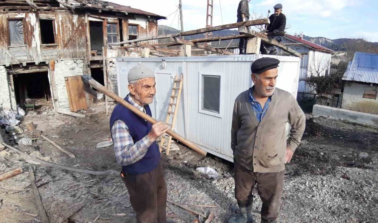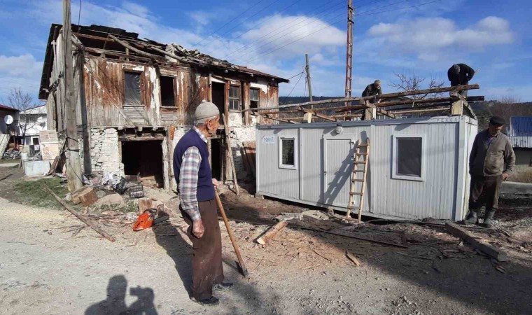 Bolu’da aile yadigarı ahşap evinin çatısı fırtınada uçtuğu için camide misafir edilen 90 yaşındaki İrfan Yazgan için konteyner hazırlandı. Konteyner Yazgan’ın ahşap evinin bahçesine konuldu. Büyük mutluluk duyan yaşlı adam, "Eski evimin çatısı uçmuştu. Şimdi ise yeni getirilen konteynere komşularım çatı yapıyor. Daha sonra da eşyalarımızı taşıyacağız. Allah herkesten razı olsun" dedi.