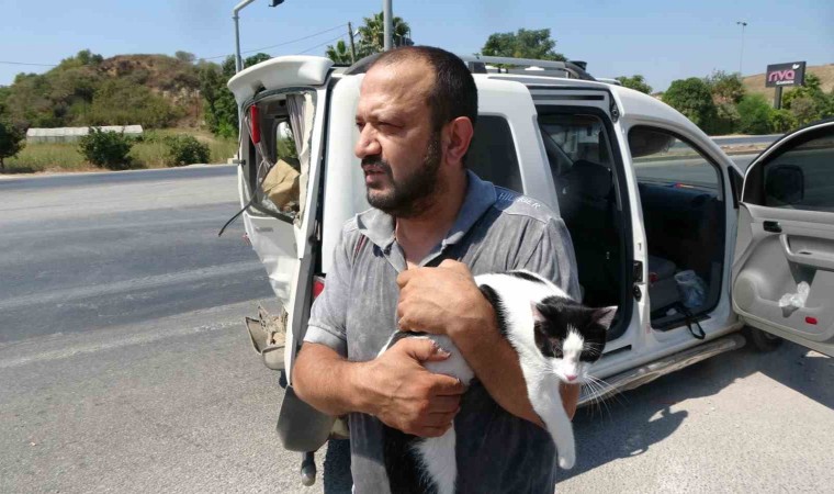 Kazanın ardından sağlık ekipleri yaralılarla ilgilendiği sırada hafif ticari araçta bulunan annenin omuzundaki kedi herkesin ilgi odağı oldu. Peygamberimiz Hz. Muhammed’in Uhud seferinde yavrularını emzirirken bularak sahiplendiği kedisine verdiği ismi taşıyan Müezza isimli kedi korkuyla annenin omuzuna tırnaklarını geçirirken, annenin yaralı oğlu ile birlikte hastaneye gidecek olması nedeniyle önce evin büyük oğlunun omuzuna, son olarak da aracı kullanan babanın kucağına geldi. Sevimli kedi, kazazedelerin olay yerine gelen bir yakınına teslim edildi.