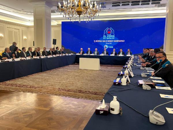 "Devletimiz kapsamlı bir inşaat programı başlattı. Biz de Türkiye’nin tüccar ve sanayicileri olarak burada yerimizi almalıyız. Bundan dolayı da ülke çapında, iş dünyamızın ve hayırseverlerin desteğini almak üzere, 'İş Dünyası Konut Seferberliği' kampanyasını hayata geçirmeyi kararlaştırdık. Bu kapsamda, depremzedeler için kalıcı konutlar inşa edeceğiz. TOBB ve iştiraklerimizde, zorunlu olanlar dışında, tüm harcama ve yatırımlarımızı durdurduk veya erteledik. Tüm kaynaklarımızı bu hayırlı işe seferber ediyoruz. 1 milyar lira nakdi katkı vererek, kampanyayı başlatıyoruz. Odalarımızla, borsalarımızla, sektör meclislerimizle, kadın ve genç girişimci kurullarımızla, yani camiamızın tamamıyla da buna dahil oluyoruz. Onlar, 81 il ve 160 ilçede, bu işin önderliğini üstlenecek ve yerele yayılmasını sağlayacaklar. Ve şimdi buradan tüm iş dünyamızı ve hayırsever vatandaşlarımızı da bu seferberliğe davet ediyoruz. Unutmayalım ki, bizler el ele verdiğimizde, aşamayacağımız zorluk yoktur. Gün, bir olma, beraber olma, kenetlenme günüdür. Gün birlik olma günüdür. Siz de gelin, ister bir blok, ister bir daire, ister bir tuğla karşılığı bağışta bulunun. Dayanışma ruhumuz ölümsüzleşsin. Millet olduğumuzu gösterelim. Şehirlerimizi tekrar ayağa kaldırmak için destek verelim. Kampanya sloganımızda da ifade ettiğimiz gibi; gelin hep birlikte 'el verin ev yapalım'. Vereceğiniz destekle, depremzedelerin yarınlarına umut olalım." (DHA)