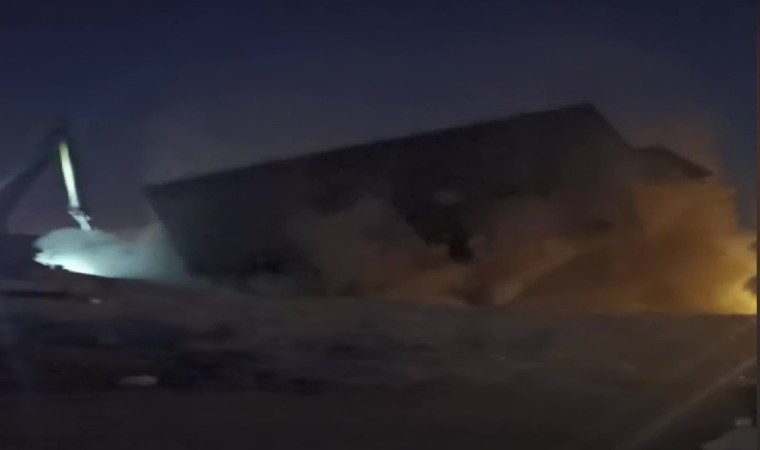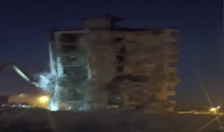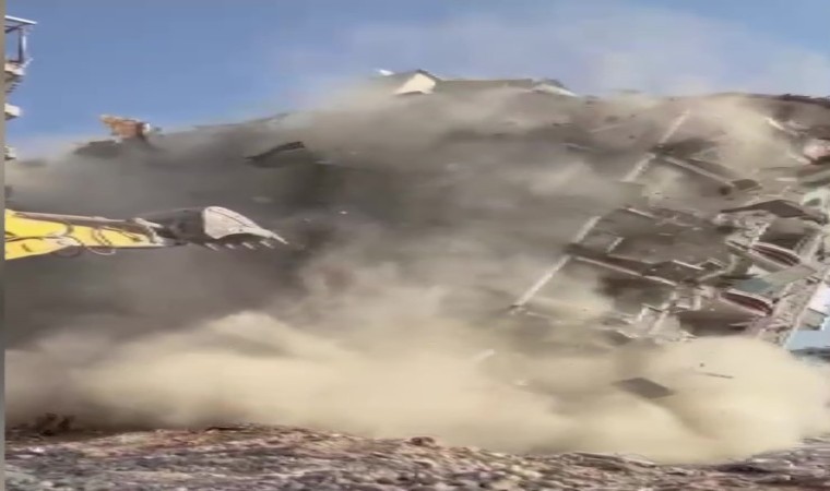 Kahramanmaraş merkezli depremlerde ağır hasar alan Hatay’da, asrın felaketinin yaralarını sarmak için çalışmalar aralıksız devam ediyor. Enkaz kentte bir yandan afet konutlarının yapımı devam ederken diğer yandan da ağır hasarlı binaların yıkımları aralıksız sürüyor. Antakya ilçesinde 2 ağır hasarlı olan 9 katlı bina, iş makinesinin darbeleri sonucu yıkıldı. Binaların yıkımı esnasında ve sonrasında herhangi bir olumsuz durum yaşanmadı. Binaların yıkım anları ise cep telefonu kamerasına yansıdı.