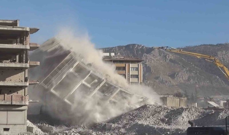 Kahramanmaraş merkezli depremlerin vurduğu Hatay’da enkaz kaldırma işlemleri aralıksız devam ediyor. Antakya ilçesi kent merkezinde enkaz kaldırma işleri neredeyse tamamlandı. Ağır hasarlı 8 katlı bir binaya önce iş makinasıyla zarar verildi ardından operatörün tek dokunuşuyla bina yerle bir oldu. Binanın yerle bir olma anı kameraya yansırken yıkım sorunsuz olarak gerçekleşti.