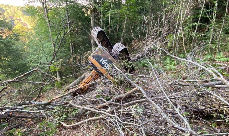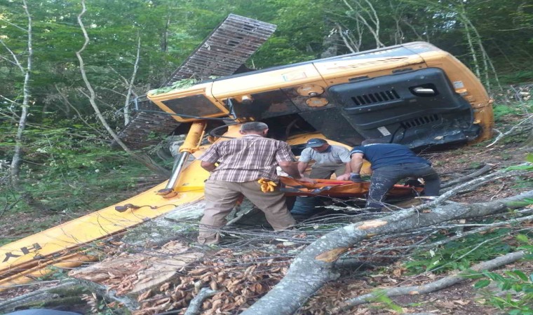 Kocaeli’nin Kartepe ilçesinde ormanda yol açma çalışmaları sırasında iş makinesi, dik yamaçtan uçtu. İş makinesinin altında kalan operatör yaralandı.