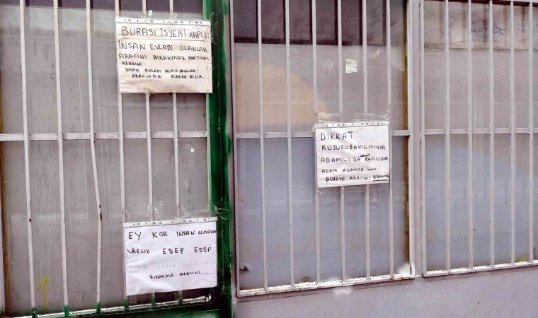 SAMSUN (İHA) – Samsun’da bir işyeri sahibi, dükkanının kapısının önüne bırakılan araçlardan bıkınca çareyi kapıya astığı ilginç yazılarda aradı.