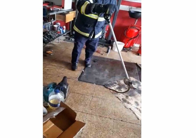 İş yerine giren yılanı itfaiye ekipleri yakaladı