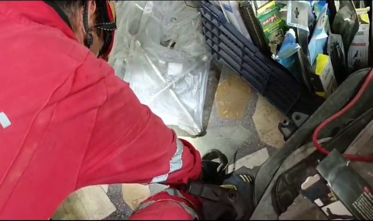 Hatay’da iş yerine giren yılan itfaiye ekipleri tarafından yakalanarak doğal yaşam alanına bırakıldı.