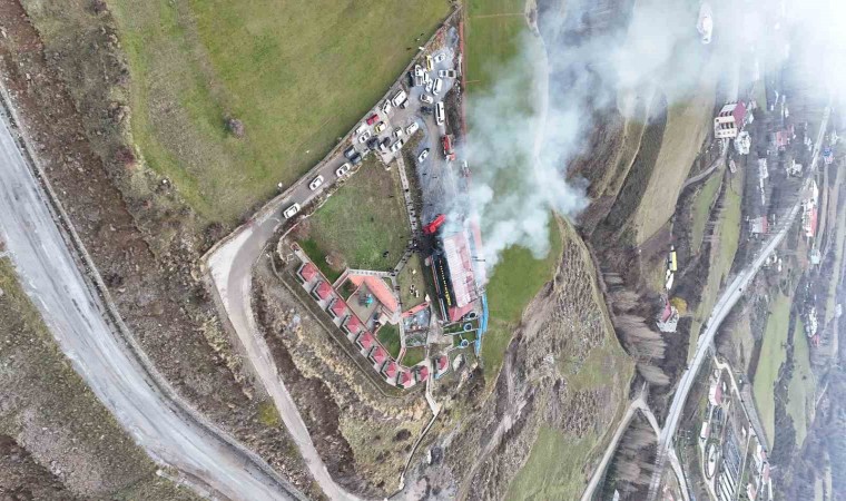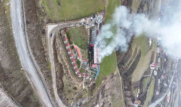Bitlis’in Tatvan ilçesindeki bir iş yerinde çıkan büyük çaplı yangın, dron ile havadan görüntülendi.