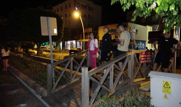 Antalya’nın Manavgat ilçesinde park içerisinde bulunan trafonun patlaması sonucu bir iş yerinde yangın çıkarken, patlama ve elektrik kesintisiyle vatandaşlar sokağa fırladı. İş yerinin yandığını görünce fenalık geçiren kadın ise yakınları tarafından sakinleştirildi.