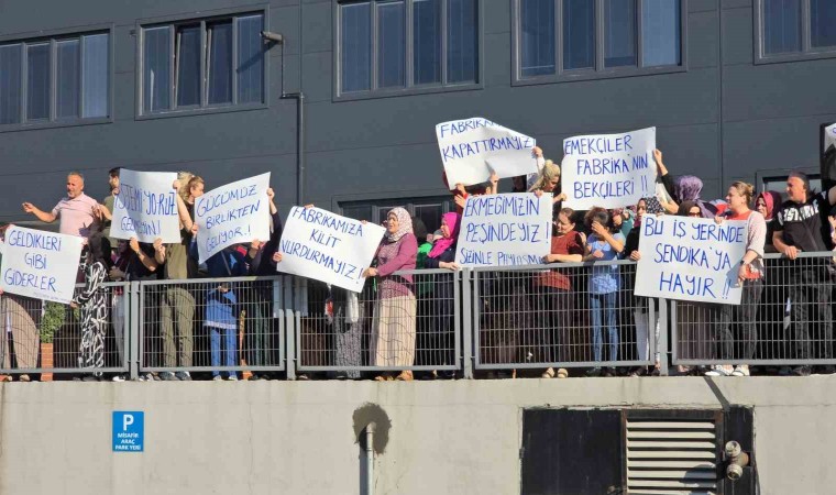 Mesai bitimi ile birlikte ellerinde yazılı ‘Ekmeğimizin peşindeyiz, sizinle paylaşmayız’, ‘Bu işyerinde sendikaya hayır’, ‘Emekçiler Fabrikanın bekçileri’ gibi dövizler açarak patronlarının yanında olduklarını ve sendika istemediklerini ifade ettiler. Dakikalarca slogan ve ellerindeki dövizlerle eylemlerini sürdüren işçilere fabrika sahibi Halil Şahin’de alkışla destek verdi.