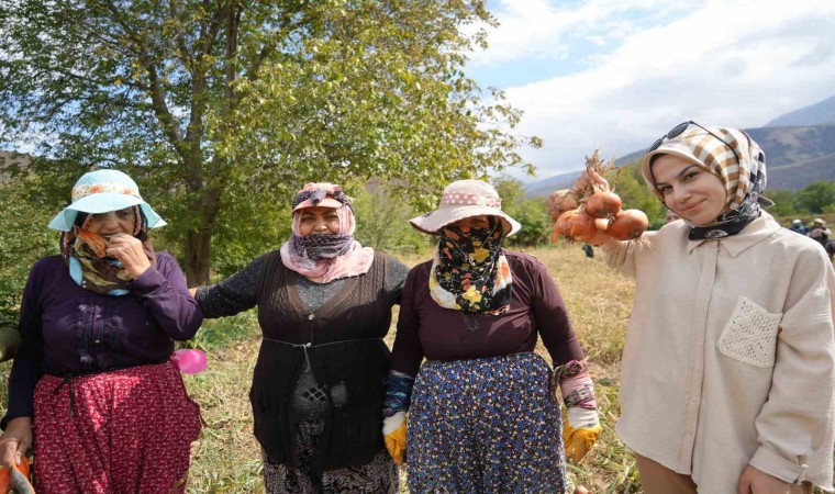 Soğan hasadı başlayan Erzincan’ın bereketli topraklarında kadın işçiler önce soğanı şarkı ve türkü eşliğinde hasat ettiler daha sonra halay çektiler.