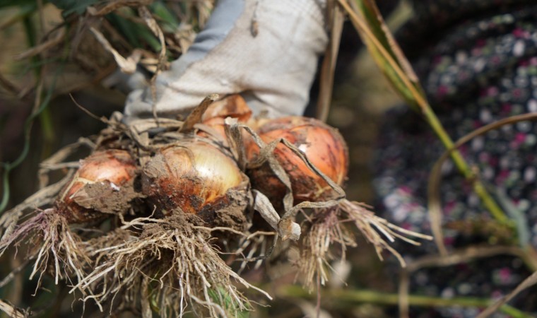 Ürün çeşitliliğinin arttığı Erzincan’ın bereketli topraklarında, sezonun gelmesiyle birlikte çiftçiler tarafından yüzlerce dönüm araziye ekilen kuru soğanda hasat başladı. Tarım işçileri tarafından yapılan soğan hasadı bu yıl yüksek verimi ile çiftçinin yüzünü güldürdü. Çiftçiler tarafından kuru soğanın tarlada 7 liradan satışa sunulacağı aktarıldı.