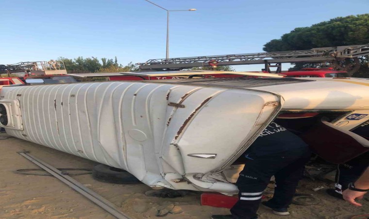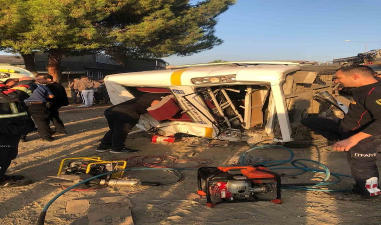Aydın’ın Germencik ilçesinde akaryakıt tankeri ile işçi minibüsünün çarpışması sonucu meydana gelen trafik kazasında işçi minibüsü devrilirken, kazada 11 kişi yaralandı.