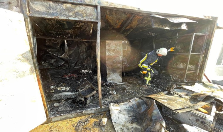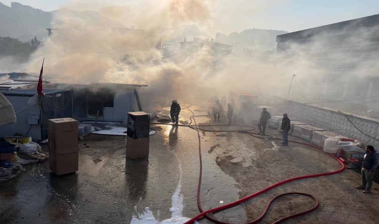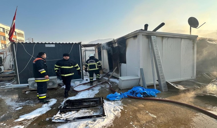 Hatay’da inşaatta çalışan şantiye personelinin kaldığı konteynerler alevlere teslim oldu. Yangında 4 konteyner kullanılmaz hale geldi.