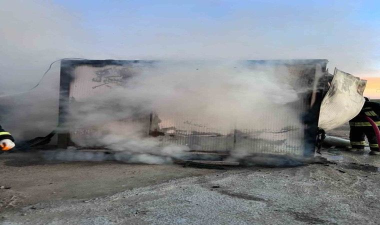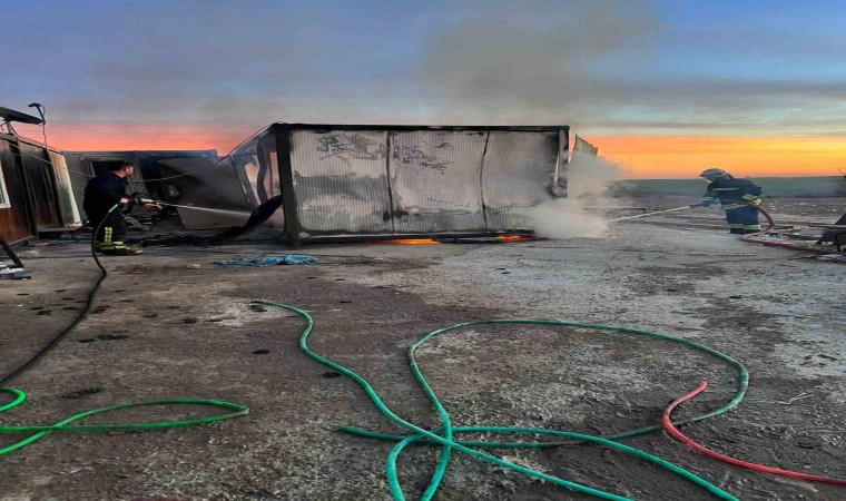 Tekirdağ Çorlu’da inşaat işçilerinin kaldığı konteyner ev alev alev yanarak kullanılamaz hale geldi.