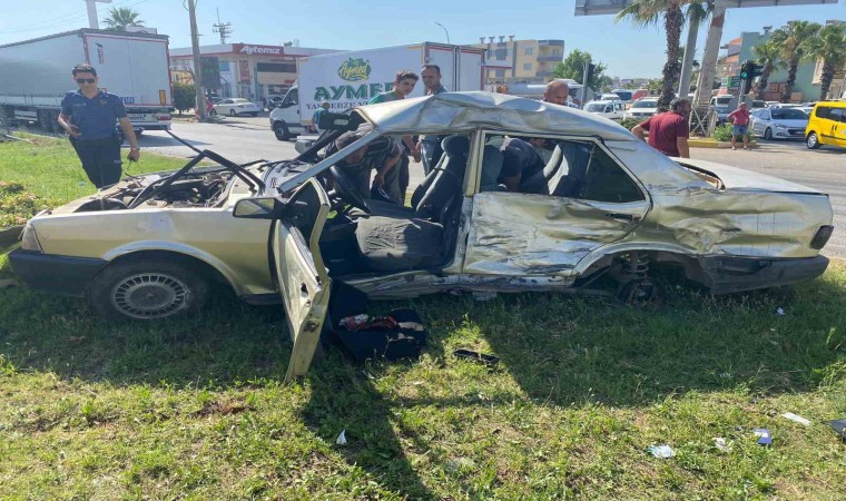 Antalya’nın Serik ilçesinde kırmızı ışıkta duramayan tır, otomobile çarptı. Kazada 2 kişi yaralandı.