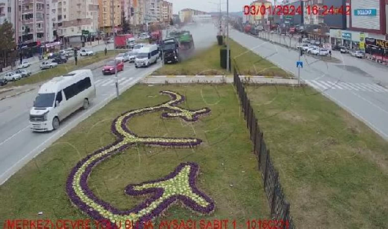 Kaza, Samsun- Ankara kara yolu Buharaevler Kavşağı’nda meydana geldi. Gürcistan'dan Adana'ya iş makinesi taşıyan Shota Zoidze idaresindeki SS-073-00 plakalı TIR'ın iddiaya göre freni arızalandı. Bu sırada kırmızı ışıkta bekleyen araçlara çarpmamak için Zoidze’nin manevra yaptığı TIR, refüje çıkıp durdu. Kaza, mobese kameralarına yansıdı. (DHA)