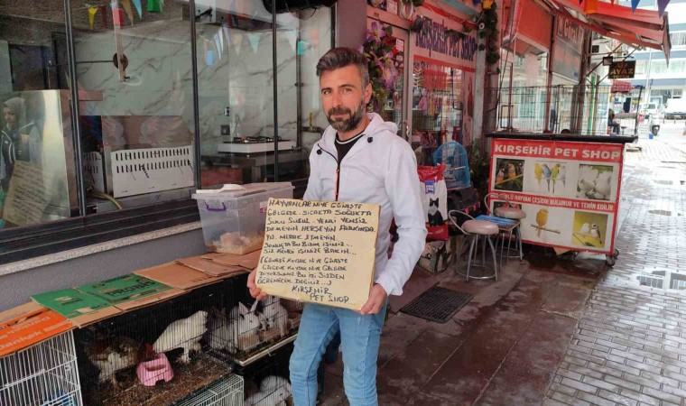 Kırşehir’de petshop işletmecisi 25 yıllık esnaf, işine karışanlara sözlü cevap vermek yerine yazdığı pankartla cevap vermeye çalıştı.