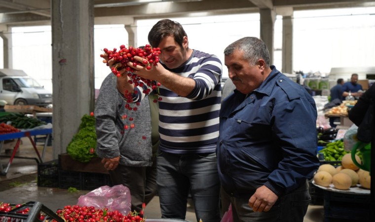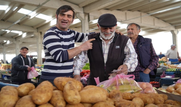 "Kayısı meyvelerin dayısı, domates değil çikolata satıyoruz, dalları bastı kiraz yetişirsen alırsın biraz" diyerek tezgahta sebze, meyve satan Gazioğlu’nun neşeli hallerini gören vatandaşlar ise Gazioğlu’ndan alışveriş yaparak günü tamamlıyorlar. 25-26 senedir pazarcılık yaptığını, vatandaşların uygun fiyatın yanı sıra güler yüze geldiğini bu süre zarfında deneyimlediğini belirten Gazioğlu, "İşimi çok seviyorum, 25-26 senedir bu işi severek yapıyorum. Güler yüzümüzle, neşemizle burada sebze, meyve satıyoruz" dedi.