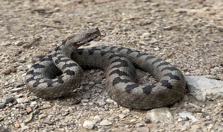Dünyanın en zehirli yılan türleri arasında bulunan boynuzlu engerek Bolu ormanlarında görüntülendi.