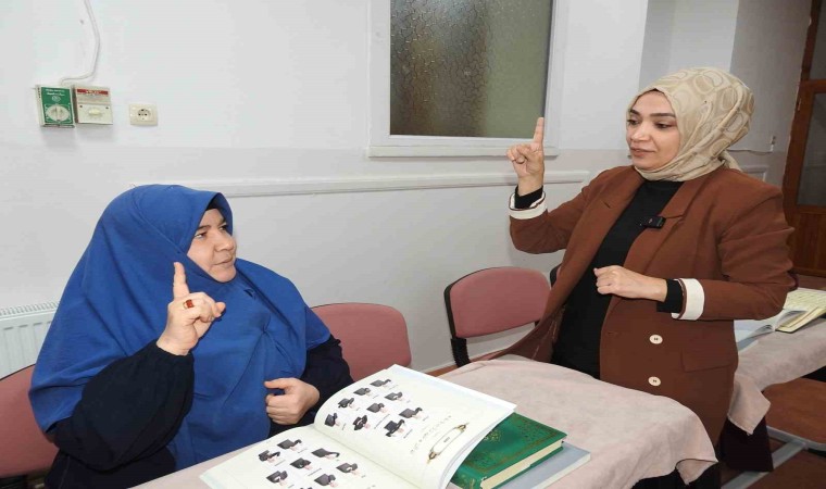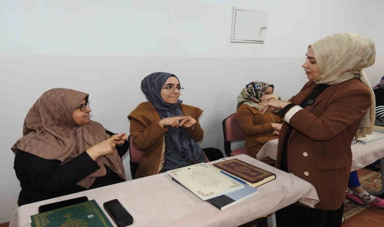 Gaziantep’te işitme engelli 15 kadın kursiyer işaret diliyle Kur’an-ı Kerim öğrenmenin sevincini yaşıyor.