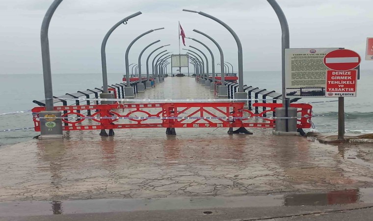 Giresun’un Bulancak ilçesinde bulunan tarihi Bulancak İskelesi Karadeniz’de etkisini gösteren şiddetli fırtına nedeniyle vatandaşların can ve mal güvenliğini sağlamak amacıyla giriş ve çıkışlara kapatıldı.