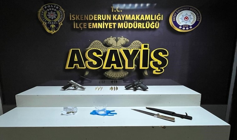 Hatay’ın İskenderun ilçesinde 28 ayrı bölgede yapılan asayiş uygulamalarında kentin 28 ayrı bölgesinde yapılan asayiş uygulamalarında 2802 şahıs, 1167 araç, 118 motosiklet, 43 işyeri incelendi. 18 araç ve 3 motosiklete 73 bin 650 TL para cezası uygulanırken, 2 iş yerinin, iş yeri açma ruhsatı olmadığı tespit edilerek işlem yapıldı. 14 yıl ve 3 yıl 4 ay kesinleşmiş hapis cezası bulunan toplamda 5 aranan şahıs yakalandı. 3 Yoklama Kaçağı şahsa tebligat yapıldı. Yapılan aramalarda 1 kesici alet. 5 ruhsatsız tabanca ve 29 fişek, 350 paket gümrük kaçağı sigara, 10 gram metamfetamin ve 10 gram esrar ele geçirildi.
