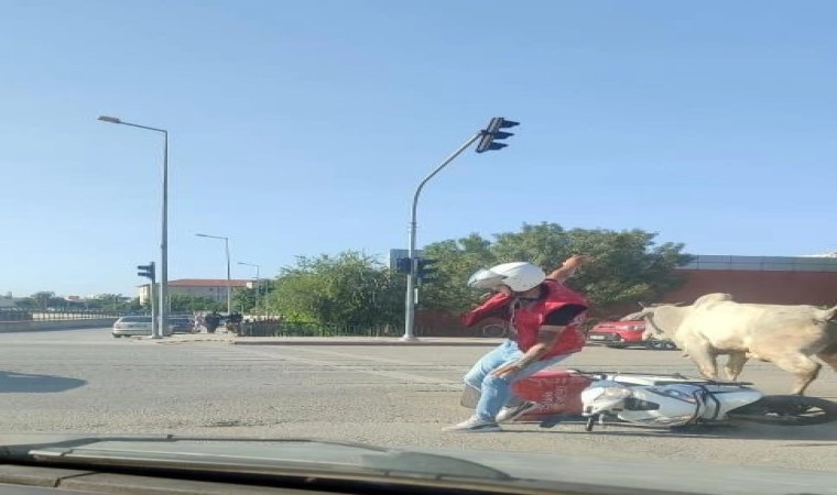 Nereden kaçtığı bilinmeyen büyükbaş hayvan ise trafikte koşarak gözden kayboldu.
