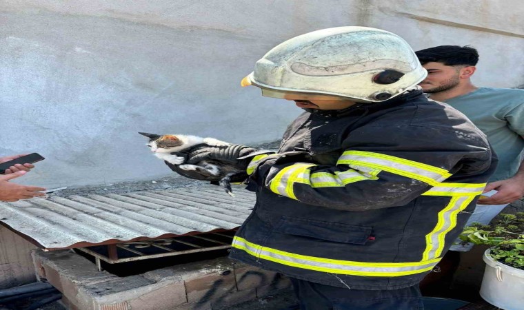 Hatay’ın İskenderun ilçesinde bir binanın havalandırma boşluğuna düşen yavru kedi, itfaiye ekipleri tarafından kurtarıldı.