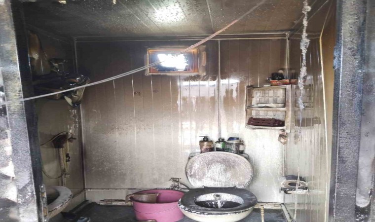 Hatay’ın İskenderun ilçesinde depremzede vatandaşların yaşadığı konteyner yanarak kullanılmaz hale geldi.