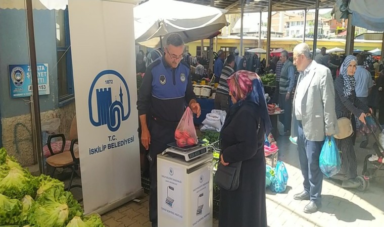 Çorum’un İskilip ilçesinde, zabıta ekipleri pazarda alışveriş yapan vatandaşların aldıkları ürünlerin ağırlığını kontrol etmeleri için terazi kontrol noktası oluşturdu.