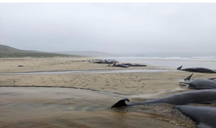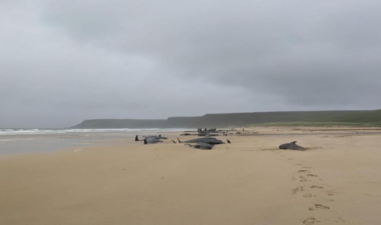 İskoçya’nın Lewis Adası’nda 55 pilot balina karaya vurdu. Dün sabah balinaların karaya vurduğunu gören vatandaşlar durumu hemen yetkililere bildirdi. Hızlıca olay yerine intikal eden görevliler, onlarca balinayı denize döndürmeye çalıştı. Balinaları kurtarmak için saatlerce mücadele veren görevlilerin çabası sonuç vermedi. Görevliler daha fazla acı çekmemeleri için karaya vuran 55 balinaya ötanazi uygularken, yalnızca bir balinanın denize döndürülebildiği bildirildi.