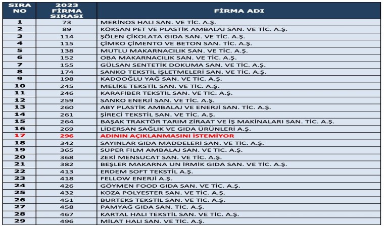 Listede yer alan firmaları tebrik eden Ünverdi, “Sanayi sektörünün en değerli verilerinden olan İSO 500 listesi açıklandı. Listeye göre, önceki yıl 28 olan firma sayımızın bu yıl 29’a yükselmesi ve iller bazında 5. sırada yer almamız memnuniyet vericidir. 6 Şubat 2023 tarihinde şehrimizde ve bölgemizde meydana gelen deprem felaketinin yıkıcı etkileri başta olmak üzere küresel sorunlarla mücadele eden firmalarımızın sergilediği performans, kent ve ülke ekonomimizin büyümesine ve kalkınmasına önemli katkılar sunmaktadır” dedi.