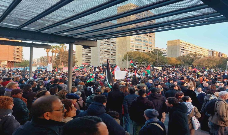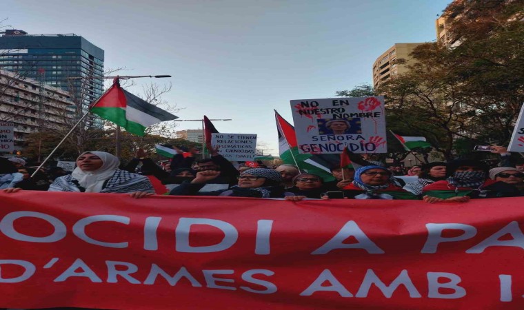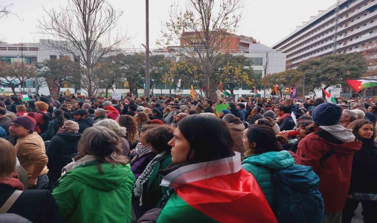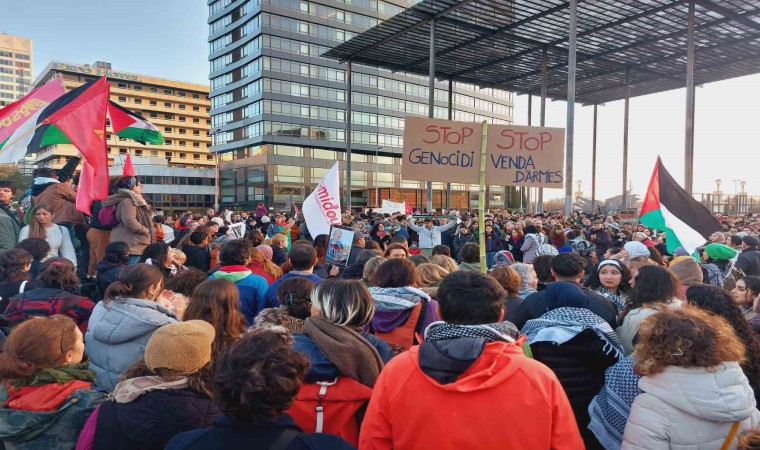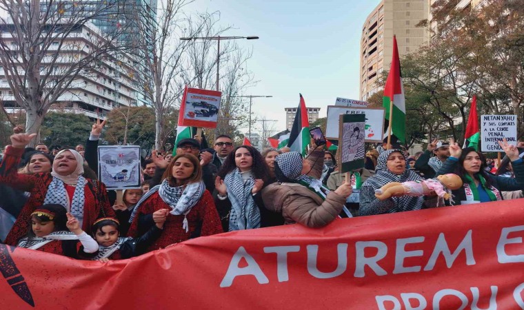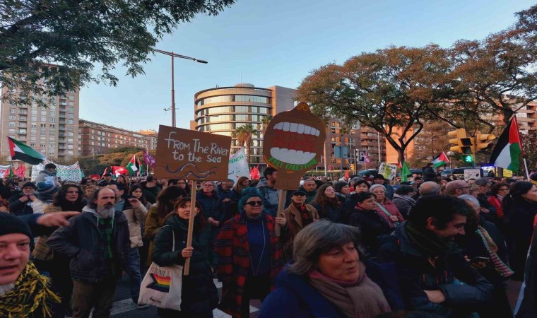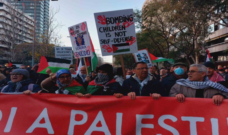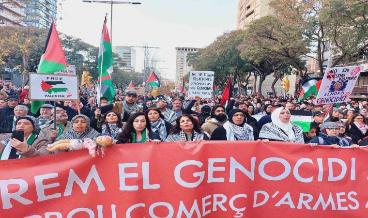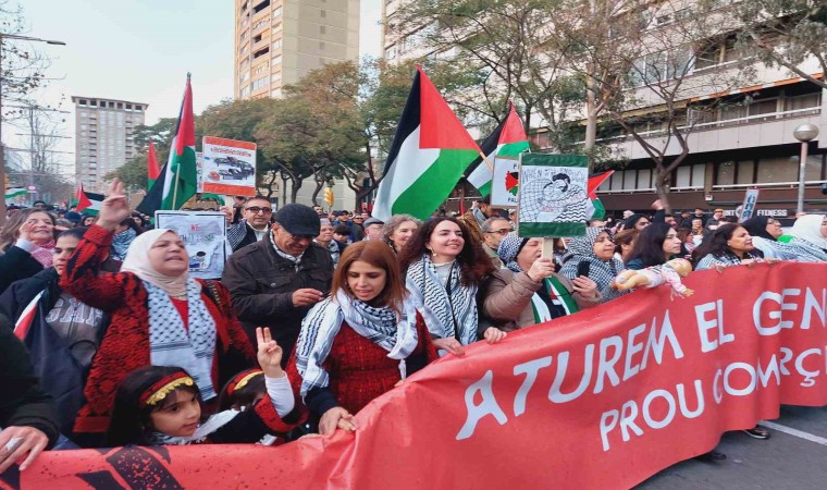 İsrail’in Gazze Şeridi’ne yönelik saldırıları devem ederken, dünya da İsrail’in acımasız saldırılarını protesto ediyor. İspanya’da Barselona şehri başta olmak üzere 70’den fazla şehirde Filistin’e destek yürüyüşleri düzenlendi. Barselona’da bulunan Sants İstasyonu’ndan İspanya Meydanı’na yürüyen binlerce Filistin destekçisi Filistin halkına özgürlük ve uluslararası topluma seferberlik çağrısı yaptı. “Nehirden denize Filistin özgür olacak” ve “İsrail’e yaptırımlar nerede” sloganları atan göstericiler, “Çocukları öldürmek nefsi müdafaa değildir”, “Özgür Filistin” pankartları taşıdı. Yürüyüşteki bir pankartta yer alan Avrupa Birliği Komisyonu Başkanı Ursula von der Leyen’in resminin altındaki “Bayan Soykırım” yazısı ise dikkat çekti.