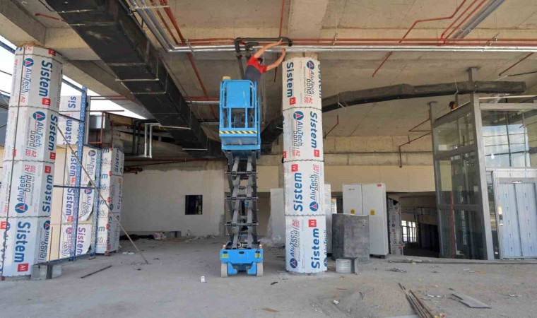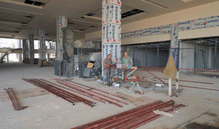 Otogarın B blok kısmında ortak yeme içme alanının bulunduğunu dile getiren İnşaat Teknikeri Yavuz Karaoğlu, “Burası 700 metrekare ortak yeme içme alanına sahip. Bölgenin bir kısmı gül dükkanları diğer bölümü de yemek yeme alanı olarak projelendirilmiş durumda. Burada asansör ve 2 katlı 800 metrekare oturma alanına sahip bir yerimiz var. Bu bölgemiz toplamda bin 500 metrekare bir alana sahip. Burada asma tavan uygulamamızı yaptık. Dükkanların seramik kaplama, boya, doğrama ve kompozit montajlarını tamamladık” şeklinde konuştu.