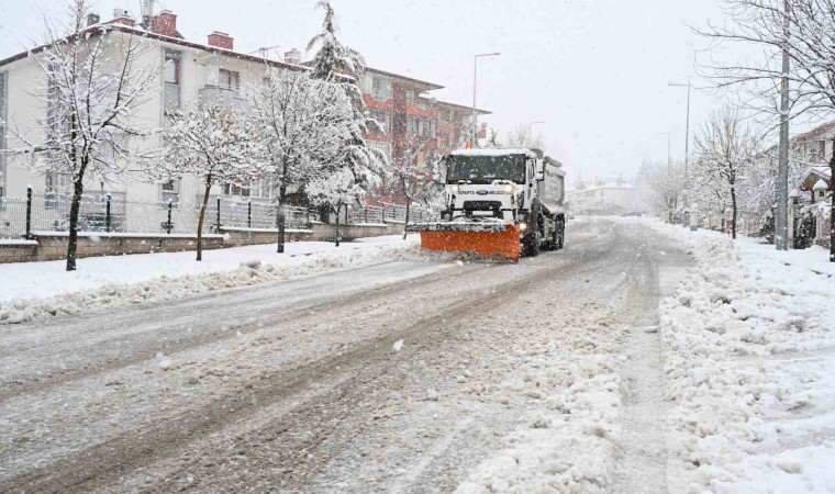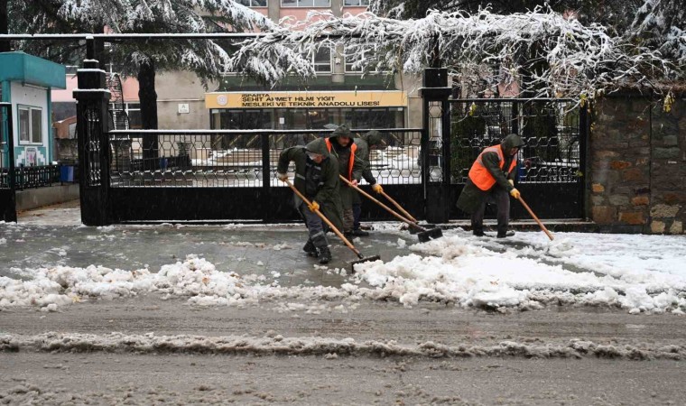 Kar yağışının başlamasıyla birlikte öncelikle ana arterler, hastane önleri, okul bölgeleri, otogar, otobüs güzergahlarında karla mücadele çalışmaları yapılırken, kaldırımlarda da yaya ekipleri temizlik çalışmaları gerçekleştiriyor.