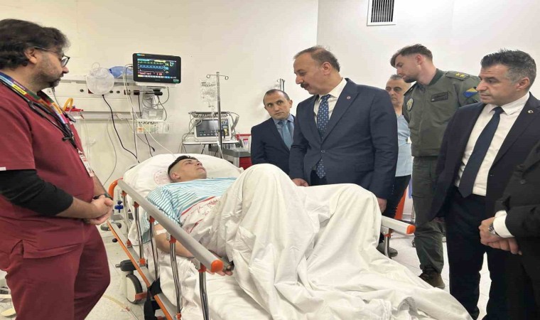 Isparta Valisi Abdullah Erin, helikopter kazası sonrası güvenli iniş yapan helikopterde bulunan ve tedbir amaçlı sağlık kontrolü için hastaneye sevk edilen 2 askeri ziyaret etti.