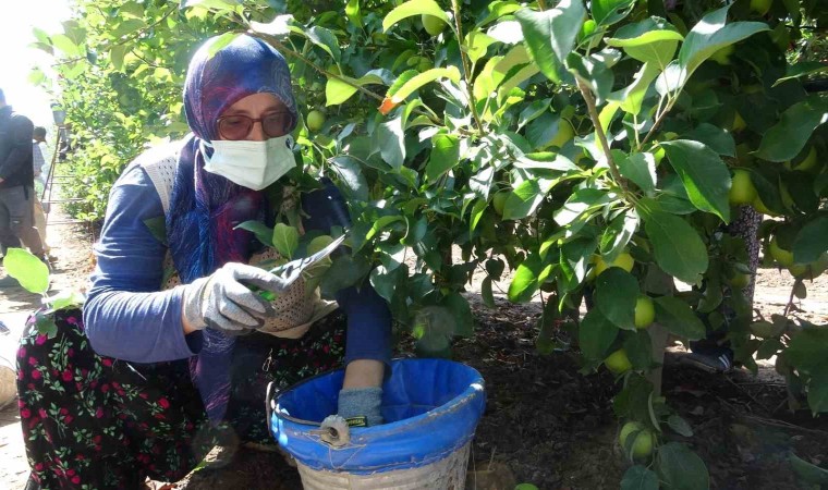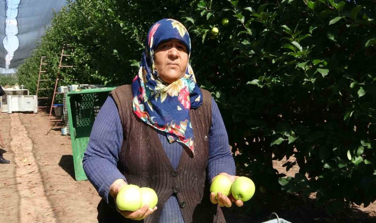 Elma bahçelerinde yıllardır tarım işçisi olarak çalıştığını belirten Ümmü Gökdoğan, “Sabahın erken saatlerinde sekiz gibi geliyoruz. 5-6 senedir bu işi yapıyorum. Geldiğimiz zaman elma toplayıp seçiyoruz. Elma toplama zamanımız iki ay sürüyor. Yaptığımız iş zor değil kolay bir iş” şeklinde konuştu.