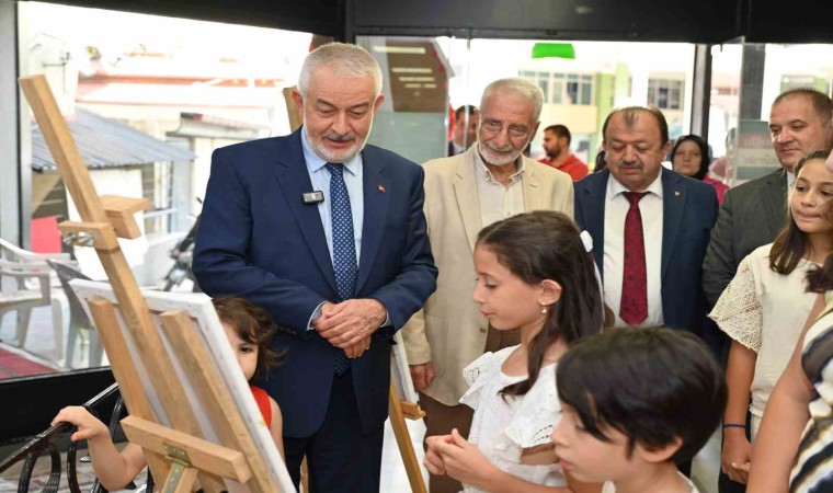 Açılış kurdelesinin kesilmesinin ardından minik Nurgül Kaya, sergide yer alan eserler hakkında Belediye Başkanı Şükrü Başdeğirmen ve misafirlere bilgi verdi.