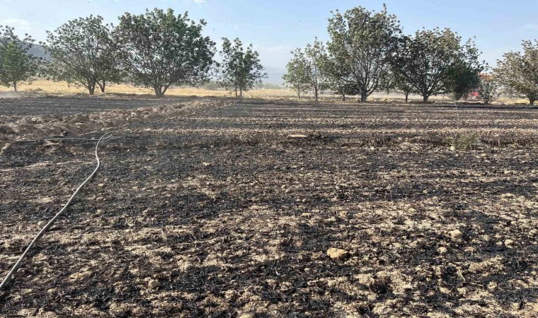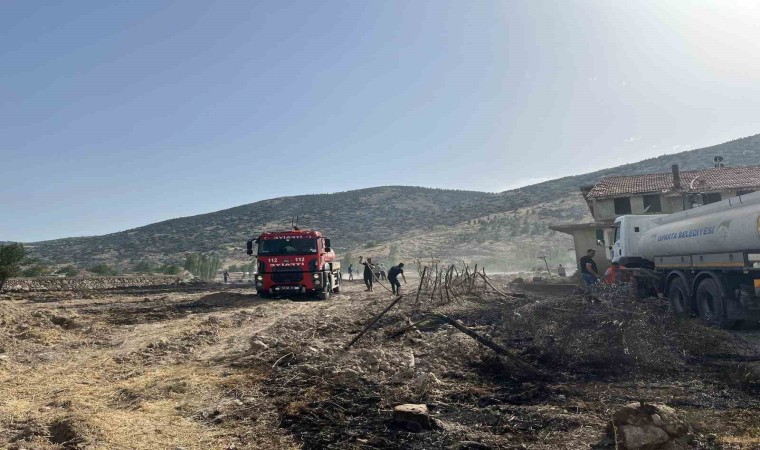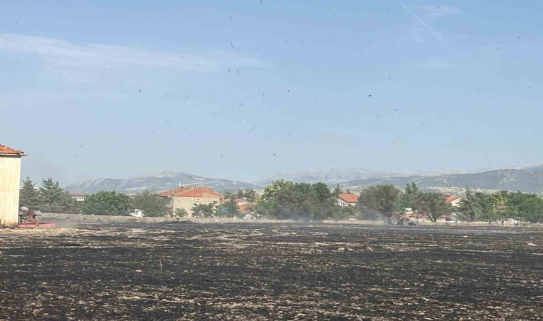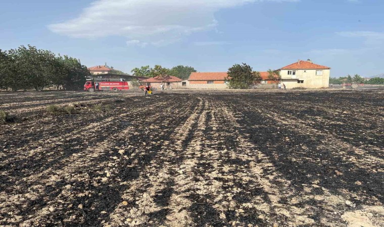 Öte yandan yangın sonucu 80 dönüm biçilmiş tarım arazisinin zarar gördüğü öğrenildi. Yangının çıkış nedeni araştırılıyor.