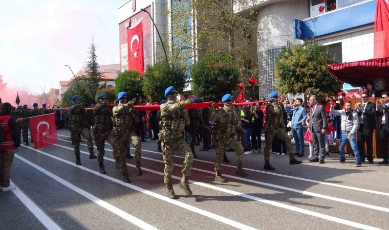 Şiirlerin okunması ve halk oyunları gösterisinin ardından resmi geçit töreni düzenlendi. Mehteran takımının geçişiyle başlayan geçit töreninde komandoların geçişi sırasında vatandaşlar alkışlarıyla destek verdi.