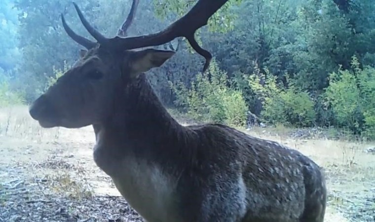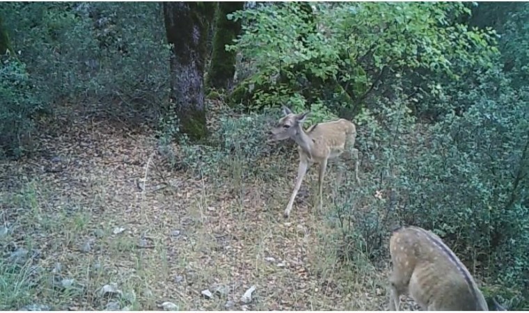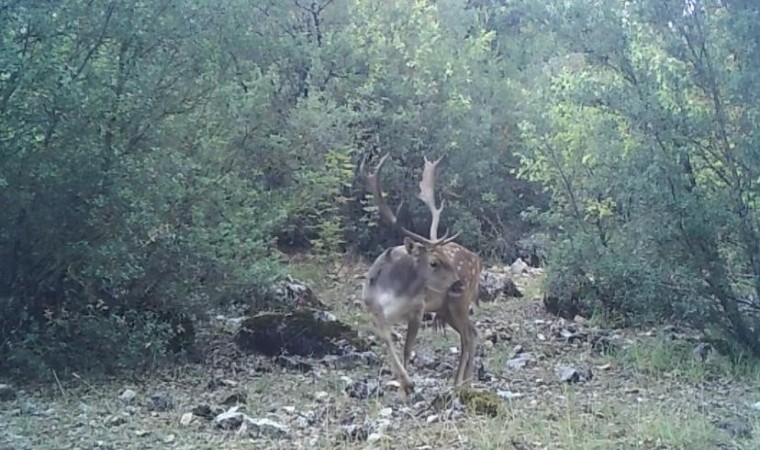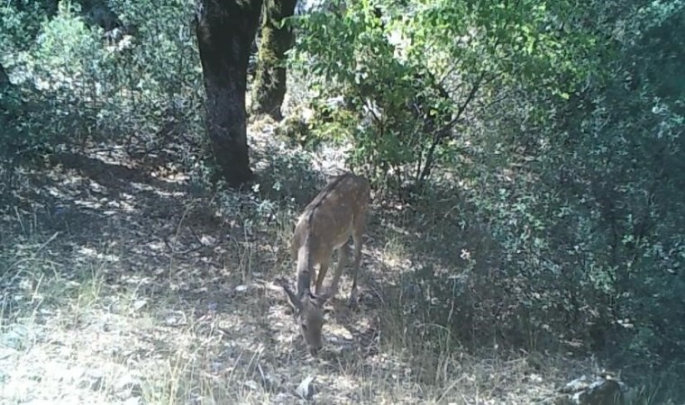 Isparta’da ormanlık alanlara yerleştirilen fotokapan ile yaban hayatı gözlemlenirken, üç alageyik fotokapanlara yansıdı.