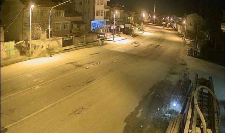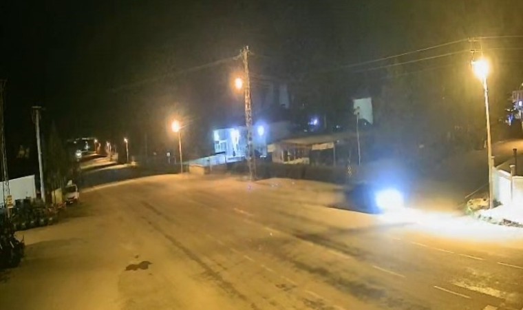 Kaza anı çevrede bulunan güvenlik kamerasına yansıdı. Görüntülerde otomobilin cadde üzerinde süratle ilerlediği ve yolun kenarında bulunan aydınlatma direğine çarptığı ve bahçe duvarı ile direk arasında sıkıştığı anlar yer aldı.