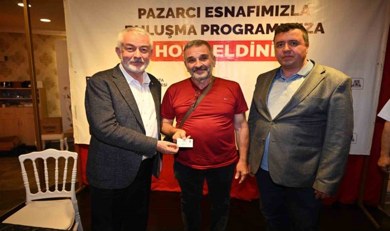 Oda başkanları, esnafa verdiği hizmetlerden dolayı Belediye Başkanı Şükrü Başdeğirmen’e plaket ve tablo hediye ettiler. Programın sonunda Başkan Başdeğirmen, pazarcı esnafına barkodlu yeni kimlik kartlarını teslim etti.