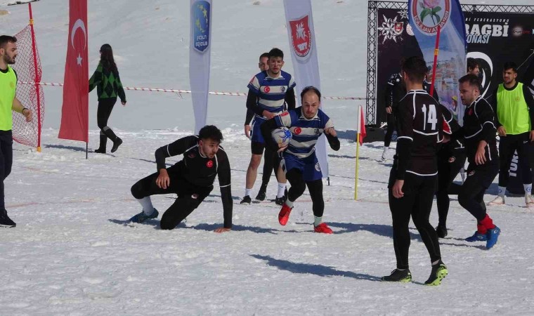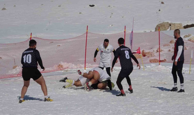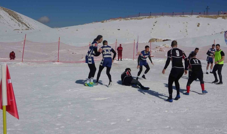 Kar Ragbi Şampiyonası, Isparta’nın 2 bin rakımlı Davraz Kayak Merkezi’nde gerçekleştiriliyor. Yarışmada 14 takımdan oluşan 200 sporcu iki gün boyunca yarışacak.