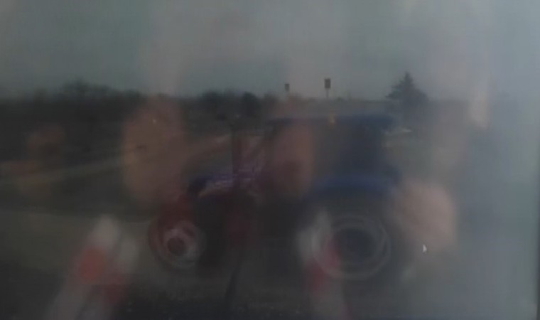 Kaza anı yolcu treninde bulunan güvenlik kamerasına yansıdı. Görüntülerde trenin seyir halinde olduğu esnada bir anda traktörün önüne çıkmasıyla çarpıştığı anlar yer aldı.
