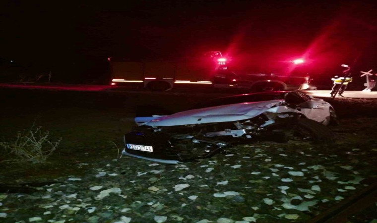 Isparta’da hemzemin geçitte yük treninin otomobile çarptığı kazada sürücü ağır yaralandı.