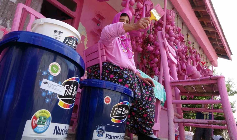 Isparta’nın Sav beldesinde evinin her detayını pembeye boyayarak dikkatleri üzerine çeken 75 yaşındaki Sakine Akkul’un boya isteği Filli Boya firması yetkilileri tarafından yerine getirildi. Kendisine kilolarca pembe boya gönderilen Akkul boyaları teslim aldıktan sonra evini sil baştan boyamaya başlayarak “Filli Boya beni çok mutlu etti. Dünyaları bana verdiler” dedi.