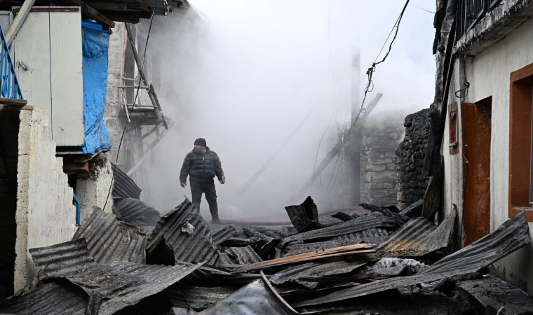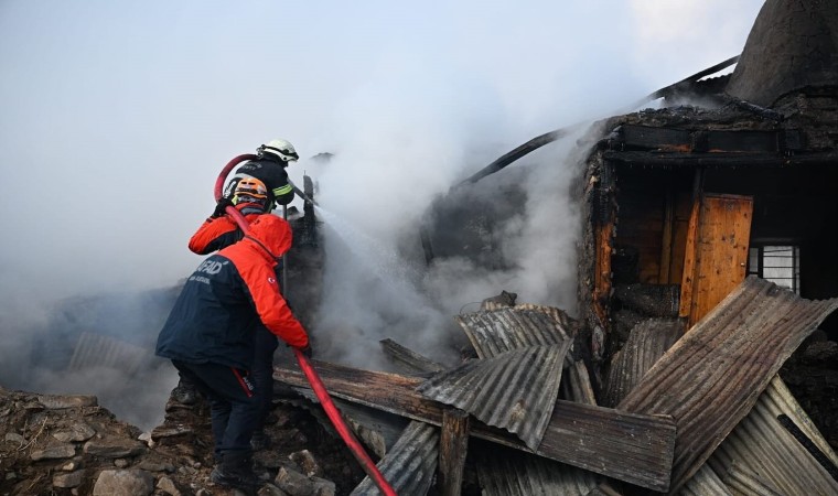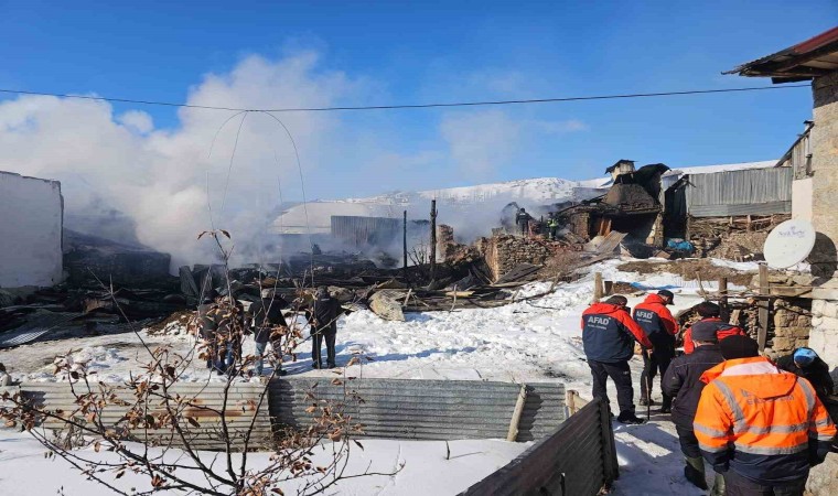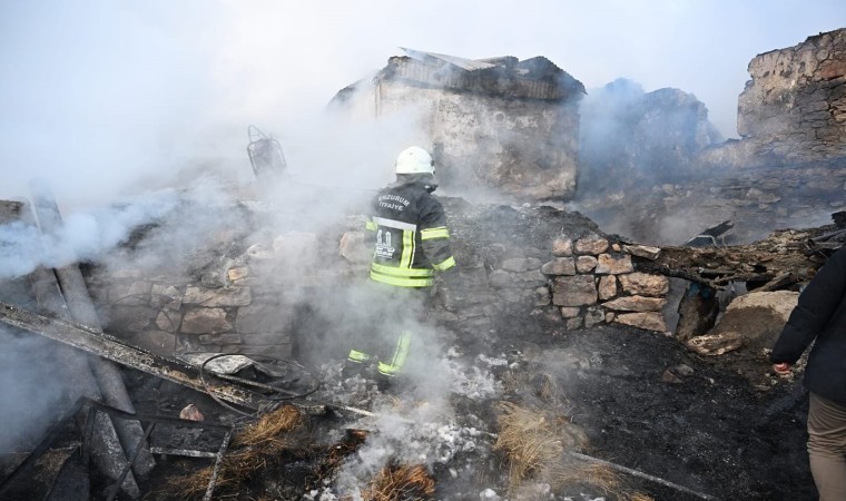 Henüz belirlenemeyen bir nedenle çıkan yangında toplam 15 ahır, samanlık ve evde maddi hasar meydana geldi.