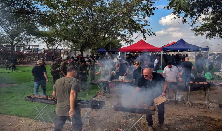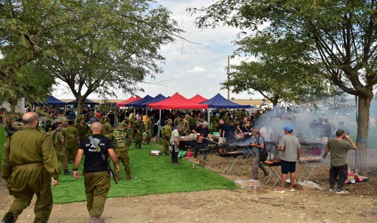 İsrail’in Gazze sınır hattındaki toplanma merkezi görüntülenirken, Gazze sınırının sıfır noktasında bir araya gelen askerler, olabilecek bir kara operasyonu için de motivasyon yemeğinde buluştu.