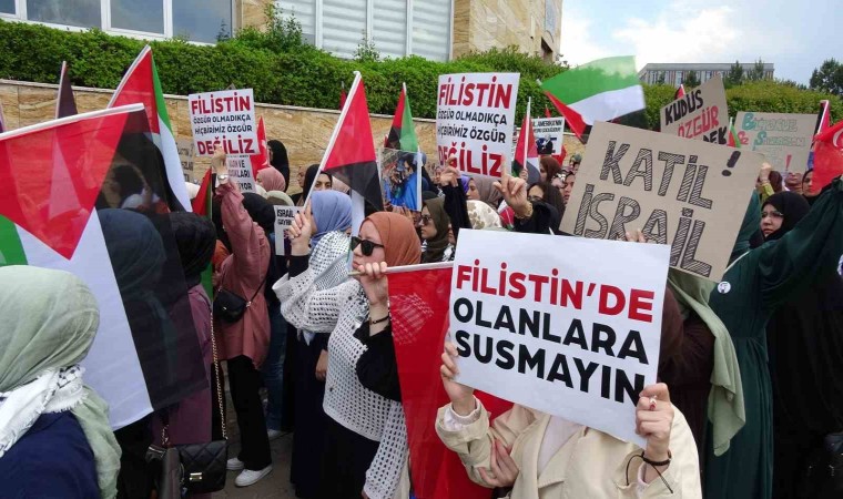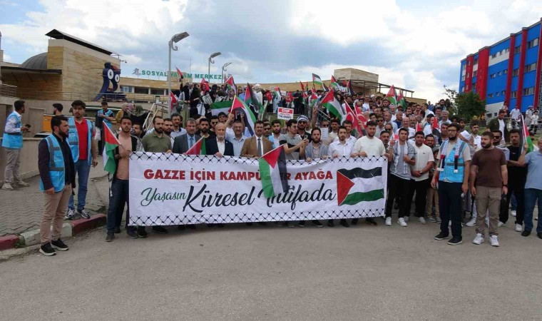 Katılımcılar ellerinde “Gazze’de Çocuklar Katlediliyor”, “Ortadoğu’da İsrail Diye Bir Devlete Yer Yok” ve “Katil İsrail” gibi çok sayıda yazılı pankartlarla Teknoloji Fakültesi önüne kadar yürüdü.